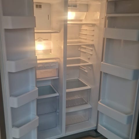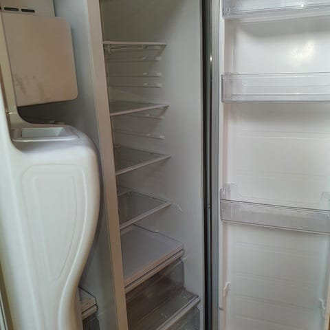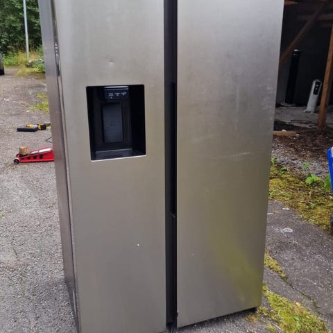 Inkluderer ismaskin og vannutløp. Merk at isautomaten har en dedekt som gjør at isen ikke kommer ut av fronten. Den er også noe ustabil i isproduksjonen generelt, derfor lav pris.