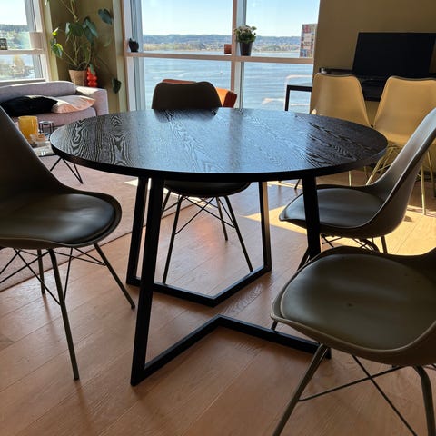Säljer min spise grupp på grund av flytt, jag køpte hele sättet för 16000 men säljer hela för 7000kr. Der er lite märken på stolarna men allt ser veldig fint och nytt ut.