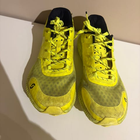 Scott løpesko i størrelse 39 for herre. Skoene har svart og gul farge med gummisåle som gir grep. Egnet for løping og utendørs bruk.