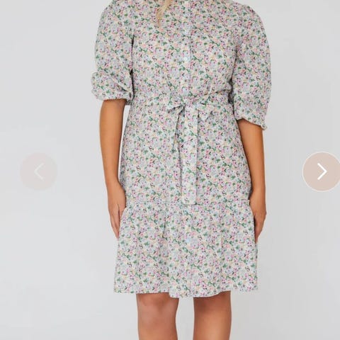 Meget pent brukt kjole fra A-View i størrelse 38, 100% bomull. Rekker meg på 170 cm til rett over knærne. Fine fryser og knapper foran.