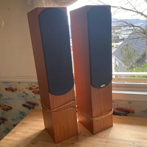 Proson Høytalere, 5 stk. selges samlet. Det er noen bruksmerker på utsiden, men lyden fungerer som den skal. Passer fint til ungdoms kjellerstue. Må hentes!
