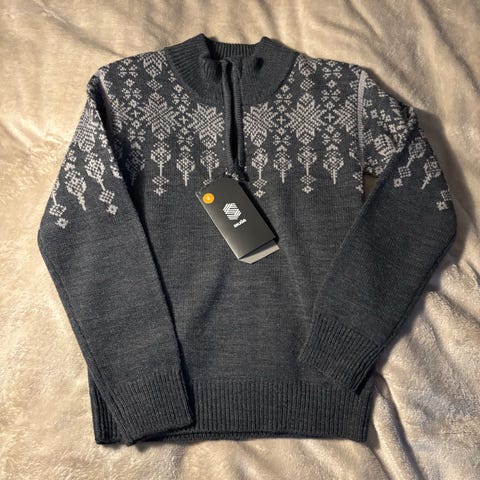Myk ullgenser fra MeMini i lys blå med pent mønster.