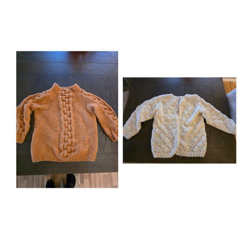 Heimestrikka genser til jente i fleire farger. Ca størrelse 10-12 år. Genseren er heilt ny, mjuk og god.