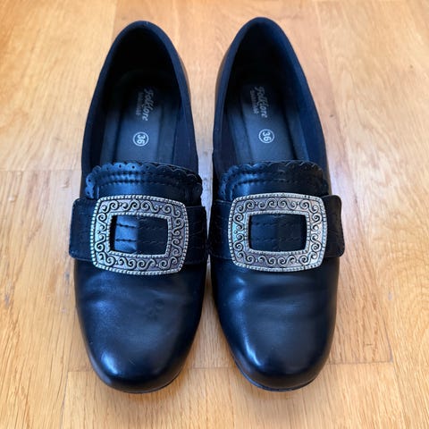 Bunadssko fra Folklore i str 37. Brukt 1 gang. Må hentes på Nesbru eller kjøpes med fiks-ferdig