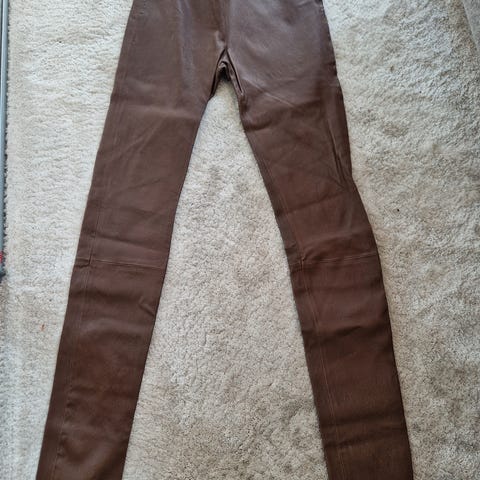 Vid skinnbukse fra Designers Remix Charlotte Eskildsen. Nydelig mykt skinn. Str 30. lommer i hver side. Ubrukt. Ny pris 4500kr. Selges for 1500kr. Vanlig mykt skinn, ikke stretch.