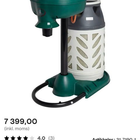 Myggfelle med full gasstank og duftstoff-refill. Kan leveres mellom Grimstad og Gautestad på vegen til hytta
