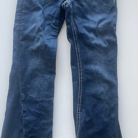 Meget pent brukte Chunky low flare jeans fra Ginatricot Young selges kr 250,-. Blå jeans med utsvingte ben og lav midje str 158 . De har gummistrikk ved midjen for justering, lynkås, lav stretch, frontlommer og baklommer med knapp og klaff. Normal i størrelsen.