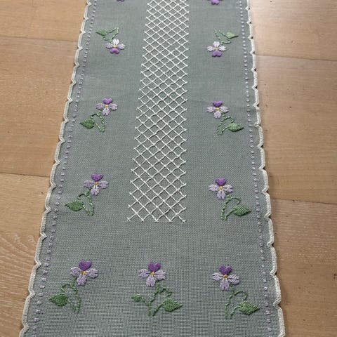 I tillegg til oppgitt mål på høyden kommer frynsene. Bordløperen er i 100% ull.