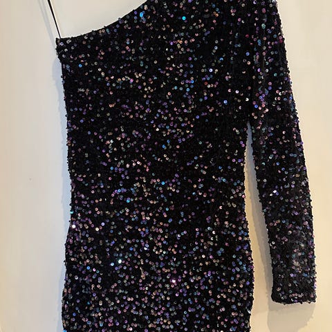 Sort og hvit kjole med zebramønster fra Pieces. Lange, vide ermer, rysjer og drapering i mage/skjørtdel, lårlang. Lukkes med glidelås i ryggen. Veldig flatterende og kjekk kjole. Ubrukt med lappen fortsatt på, nypris 600 kr.