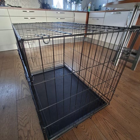 Sammenleggbart Dogman hundebur selges kr 250,- ,Mål nede : L77cm x B49xH56. Må hentes