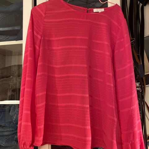 KAFFE Bluse i størrelse 40 for kvinner. Blusen er rosa og har et teksturert mønster i stoffet. Den har lange ermer og en rund hals.