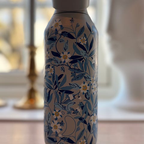 Flaske i glass med grønn aventurin.