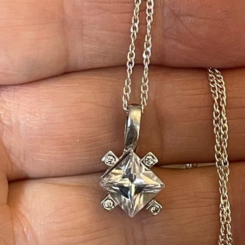 Selger et vakkert sølvsmykke 925 med en vakker rød krystall, usikker hvilken krystall.
