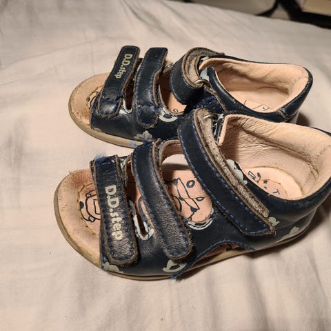 Sandalene er i god stand. Laget av lær. Noen lite bruksmerker, men de ødelegger ikke estetikken. Masse bruk igjen!