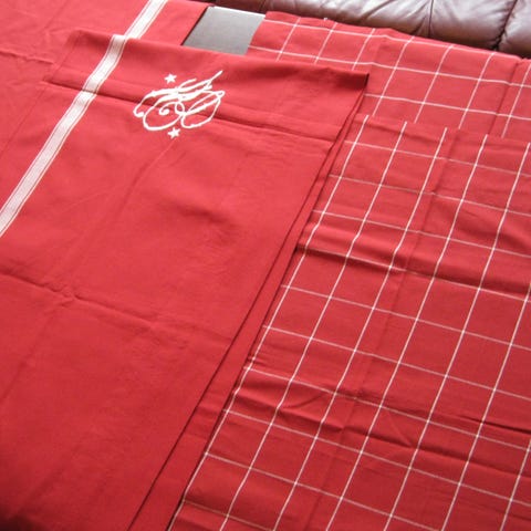 Gardin kappe turkis med Elvis bilder. Tallerkner og skjorte.