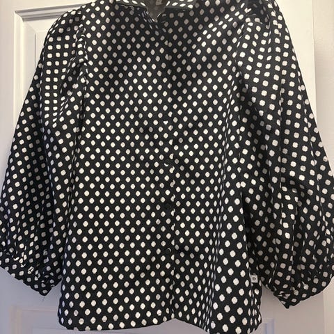 Fashion Victim prikkete bluse med knyting – ny, ubrukt (str. / S)