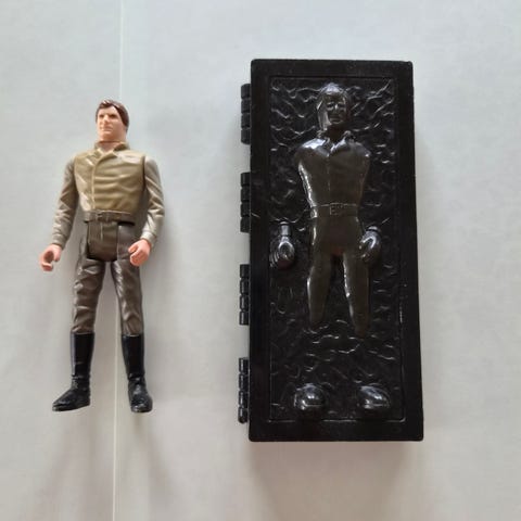 Star Wars Vintage Kenner Han Solo i carbonit Han solo er i meget god stand carbonit blokken har endel mindre riper etter lek og lagring.