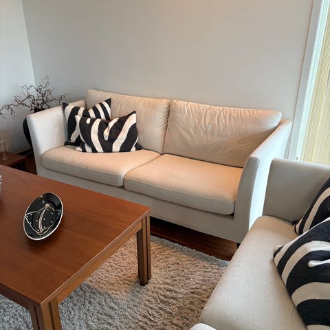 Lys og fint velholdt sofa bestående av 2 stk 3setere selges for kr 2500,- pr stk