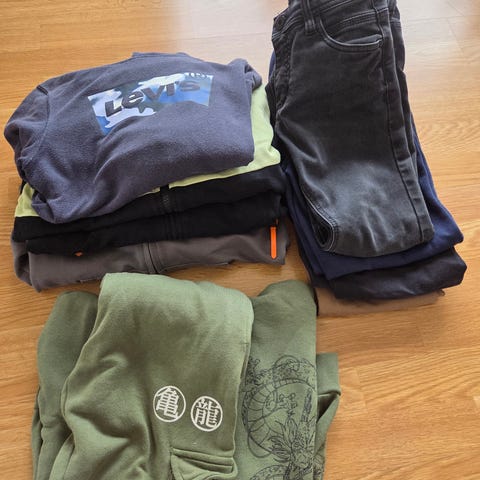 2 tynne jakker, 2 hettegenser med pokemon trykk, 1 olaskjorte