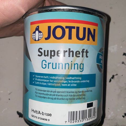 Jotun Superheft Grunning grunning med volum på 0,68 liter. Produktet brukes som underlag for maling, og er egnet for å forbedre vedheft og dekkevne på overflater før påføring av toppstrøk.
