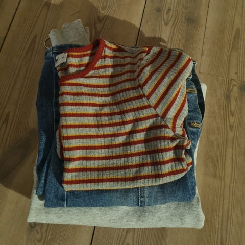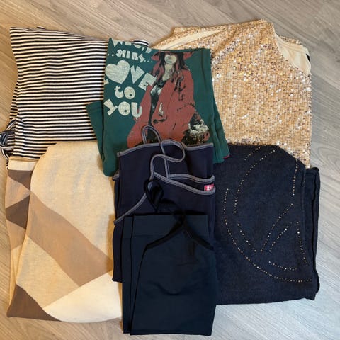 1 tunika, 1 lang strikka jakke og 1 olaskjorte