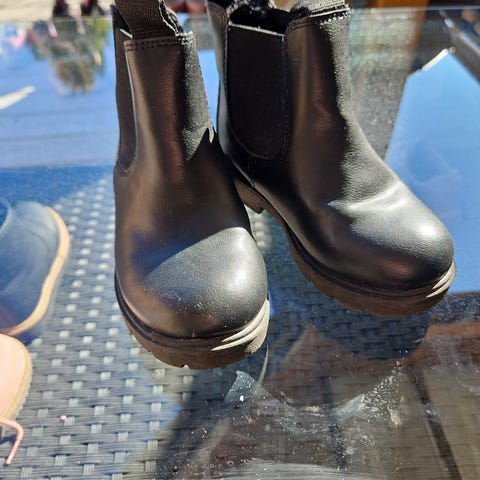 Sorte pene boots / skolett. Kunstig semsket skinn og søt sløyfe på siden. Lave/til over ankelen. Passer som pensko ute.