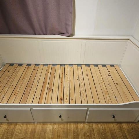 Ikea Hemnes enkeltseng med Ikea Hesseng madrass (samme som Vatnestrøm madrass)