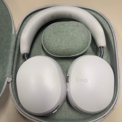 Sonos over-ear hodetelefoner i hvit farge. Hodetelefonene har polstrede øreputer og justerbar hodebøyle for komfort. Designet for trådløs bruk med innebygde kontroller. Egnet for både hjemmebruk og reise.