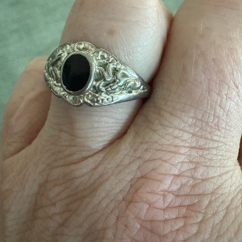 Med sort "sten", stenen vises fra både fram og baksiden.