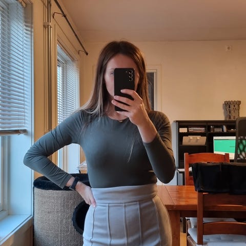 Pent skjørt i grått, til hverdags eller til fest. Str. M.