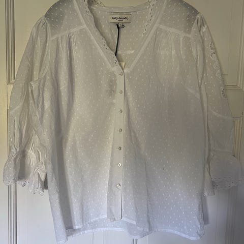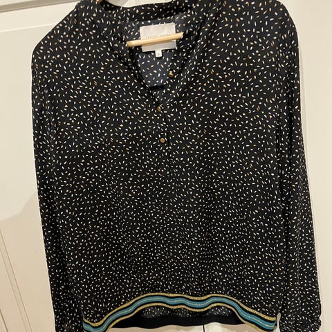 Fin topp/genser fra Lollys Laundry, lilla glitter, str XL, selges kr 200.