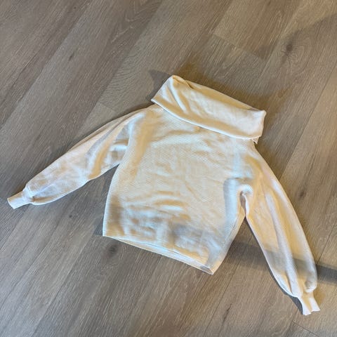 Strikket genser som sitter pent og løst på, croppet (kortere) modell.