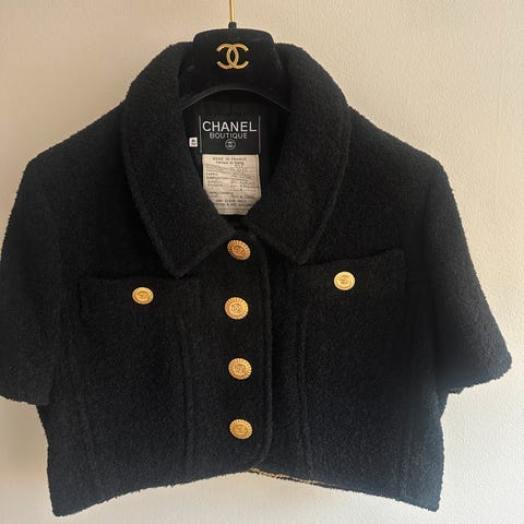 Chanel Vintage Bluse i størrelse S/M, hvit farge med mønster. Blusen har knappelukking foran og er laget i et lett materiale. Passer for kvinner i størrelse 36-38. Umulig å få tak i denne blusen, som er fra kolleksjon i 1996. Har vært innom MA vintage på Frogner for autentisitet-sjekk, hvor den kom tilbake godkjent og de ønsket å selge den for meg. Jeg ombestemte meg, og ønsket å beholde blusen for eget bruk - men nå føler jeg det er noen andre sin tur til å ta over denne skatten. Det er blitt noe uttynning i stoffet bak i nakken, men ikke synlig med mindre man holder blusen opp mot lyset. Ingen risiko for at det går hull, det er bare litt tynnere. Det er også en flekk bak under "skulderbladet" som jeg ikke har turt å få fjernet. Mulig den går bort. Denne vil gå opp i verdi.