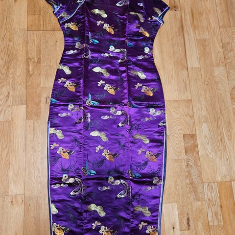 Purple Korea kjole med tiger, strikk rundt livet str XS/S