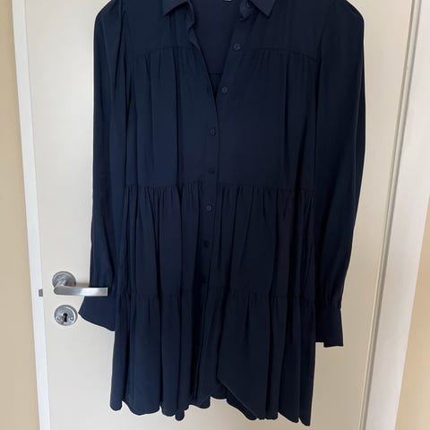 Mørkeblå kjole med nydelige korte blondeermer. 🌸
