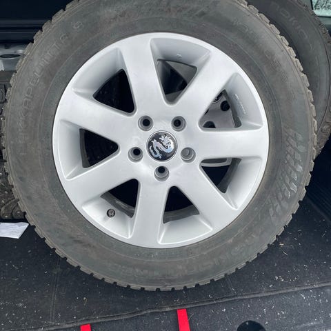 Piggdekk på felg selges da bilen de hører til er solgt. Har tidligere stått på en Nissan X-trail.