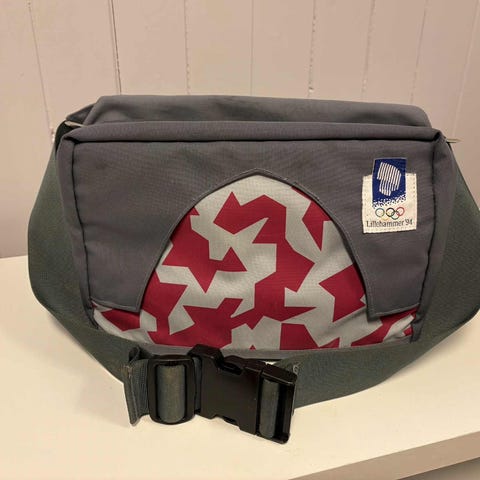 Robust skulderveske i solid materiale. Kakifarget med lærdetaljer. Ca 25 cm bred og 5 cm vid. Kjøpt på flyplass i Sør-Afrika. Velegnet til bruk i natur og fritid, feks fugletitting, feltarbeid osv