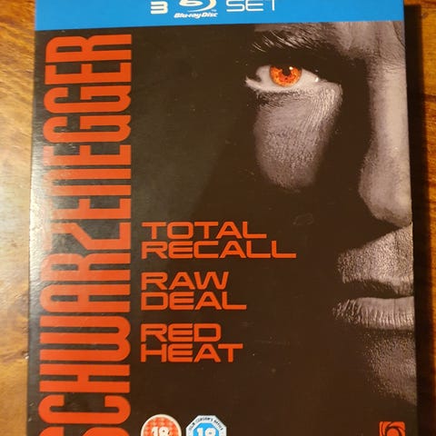 SCHWARZENEGGER 3 MOVIE BOKS UK UTGAVE I PLAST Kjøper betaler frakt kan også hentes Hakadal. Kommer fra røyke hus