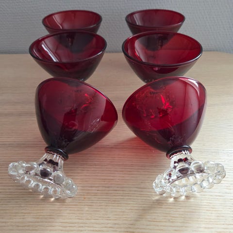 Nydelig, gammel skål i rødt glass.