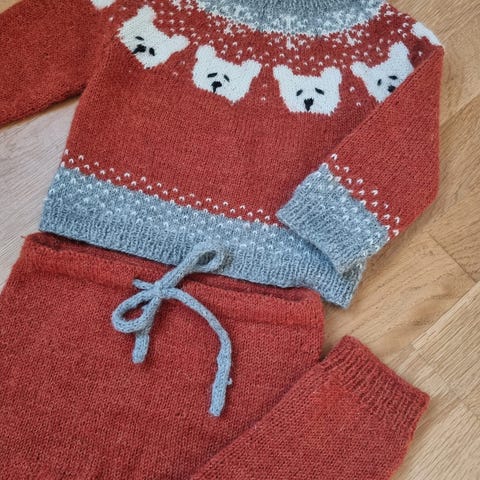 To par ullbukser, en tykk og en tynn genser i 100% ull.