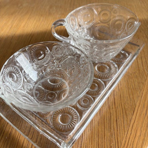 Fløtemugge og sukkerskål med tilhørende fat