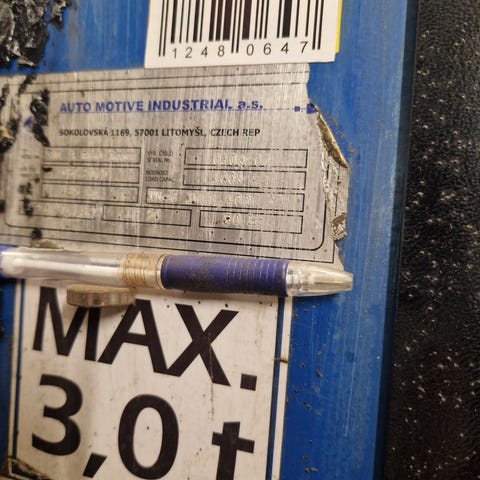 Ukjent merke bilheis i metall med synlige rustflekker. Designet for utendørs bruk, med en enkel konstruksjon og mekaniske komponenter. Passer til løfting av kjøretøy 3500 kg for vedlikehold eller reparasjoner. Ingen spesifikke mål eller ytterligere detaljer tilgjengelig. Det var nye skruer når vi monterte den, og den er lite brukt .Selges for 4000 eller bud.