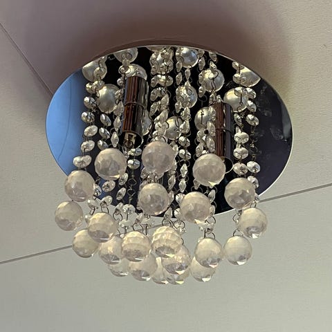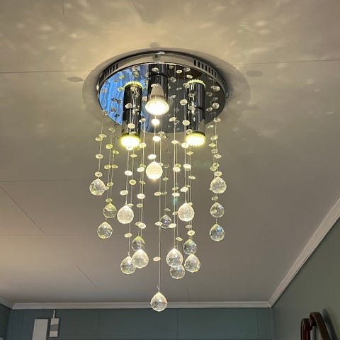 Flott krystall taklampe selges. Lampen gir et varmt og dekorativt lys og passer fint i stue, gang eller soverom.