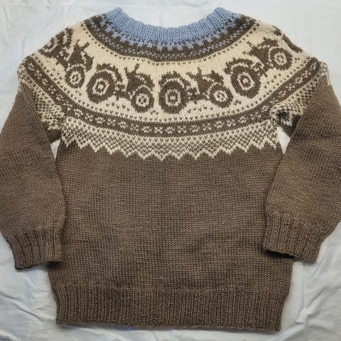 Hjemmestrikket ullgenser. Mål står på bilde nr. 3 (det er målt tvers over).