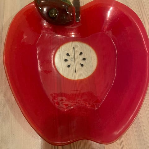 Flott og praktisk etasje serveringsfat. Ø27x21 H26cm. Den gir Jul vibes pga farge, men motiv er egentlelig av vilje jordbær.