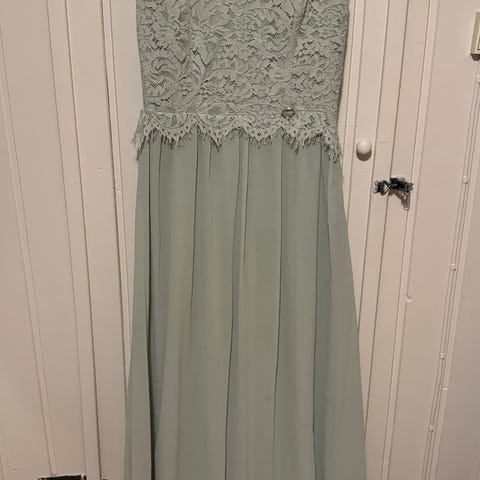 Helt ny kjole. Kjøpte flere til bryllup, men denne ble ikke brukt og selges. Den er helt nydelig, og passer en lang person. Jeg er 173. Kan nok legges opp av noen som kan det. Fargen er litt mer rosa/gammelrosa, og ble vanskelig å få frem.