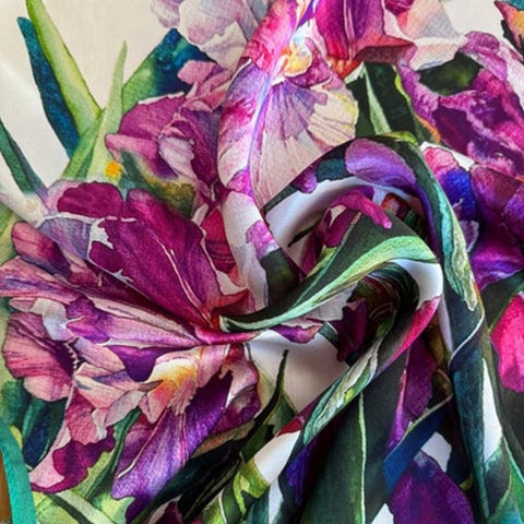 Nydelig silkeskjerf, ca 85x85 cm