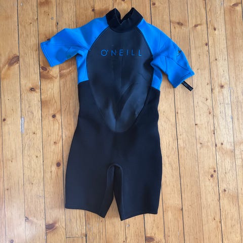 Selger en pent brukt O'Neill våtdrakt i god stand. Kort modell med korte ermer og ben, perfekt til sommerbruk, bading, surfing eller andre vannaktiviteter. Glidelås foran gjør den enkel å ta av og på. Ingen hull eller skader.