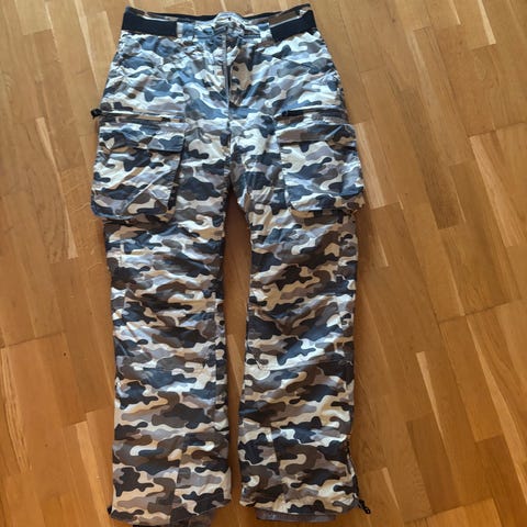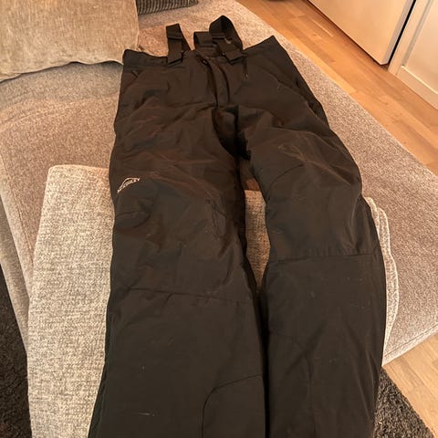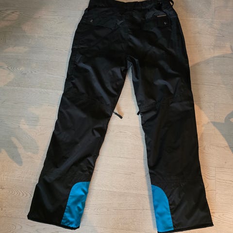 Selger skibukse/slalombukse. Regulerbare seler. Regulering i livet. To sidelommer med glidelås. Snøstopper på føttene.