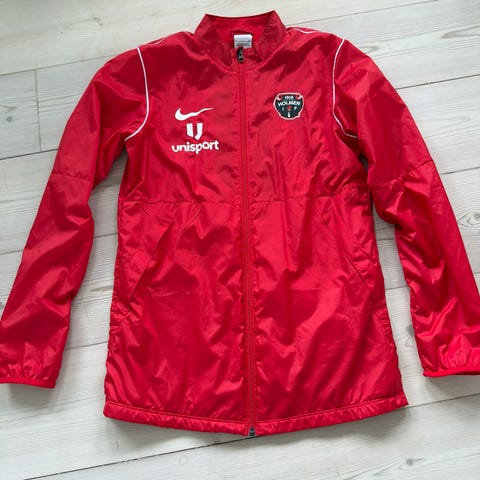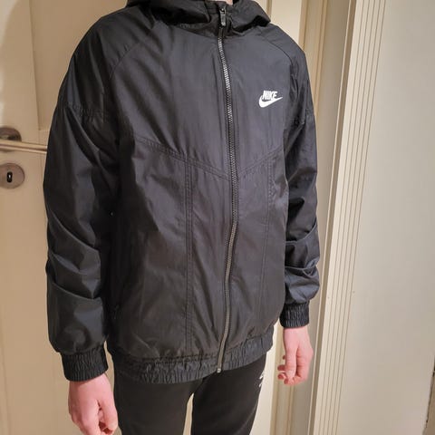 Selger en lite og pent brukt Nike jakke. Jakken har hette og er fôret med flis stoff på innsiden. Jakken passer både til gutt og jente. Str er 158-170 (xl barnestørrelse), kan passe voksne som bruker str S også.
